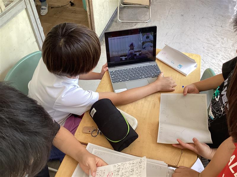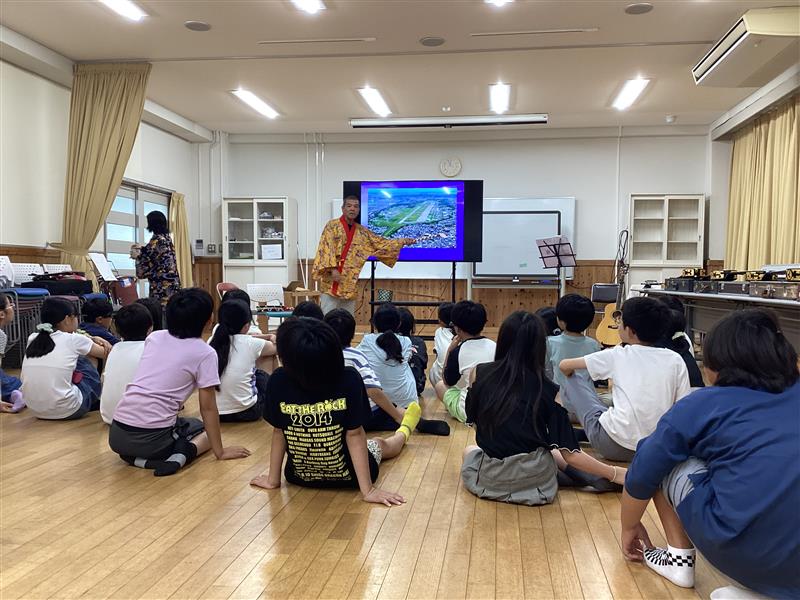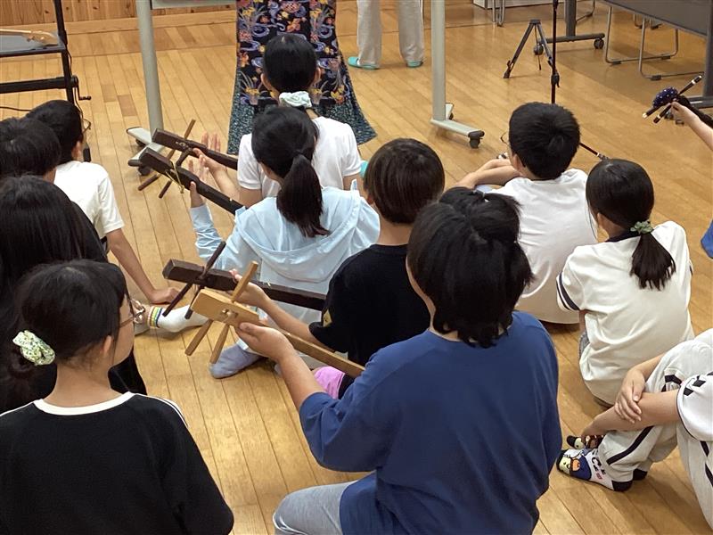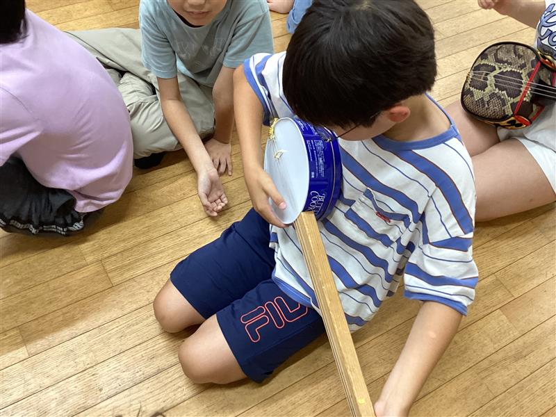 最後はみんなで「カンカラ三線」という曲を歌い、演奏しました。三つの弦をペンペンと弾く姿は様になっていて、褒められるとみんな満足気でした。沖縄の文化に触れた貴重な体験となりました。