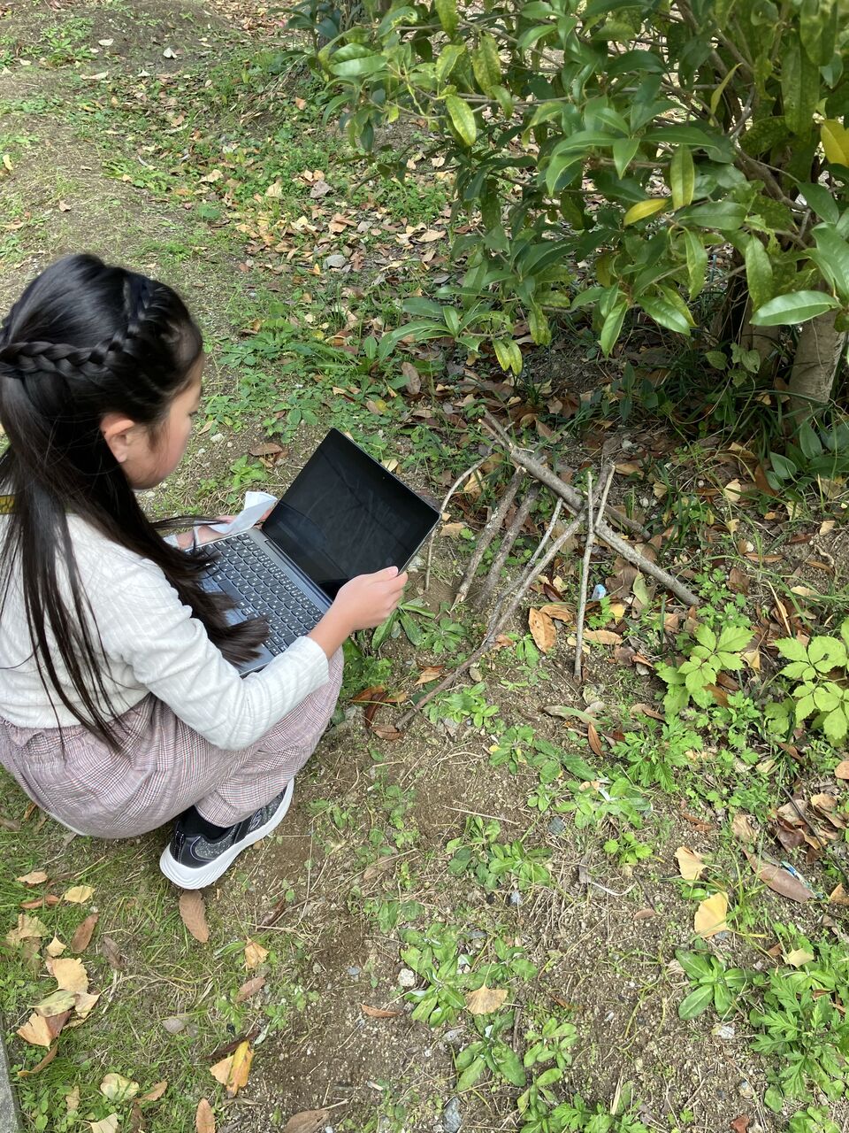 2024年12月12日 3年図画工作 「ここがすみか」 3年生の図画工作では、自分を消しゴムと見立て、運動場にすみかを作る活動をしました。落ちている木の枝や葉、石など周りにあるもので飾り付けをしたオリジナルのすみかを作ります。友だちと「この石ベッドに使えそう!」「葉っぱをカーペットにしようかな〜」「この角度で写真撮ったらキレイ!」など、たくさん話しながら製作する姿がたくさんありました。黙々と自分のこだわりを形にしようと試行錯誤して、作り上げることができました。3年生たちのアイデアにびっくりです! カテゴリなしの他の記事